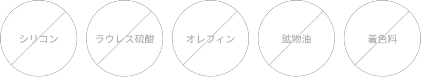 シリコン・ラウレス硫酸・オレフィン・鉱物油・着色料すべて不使用。
