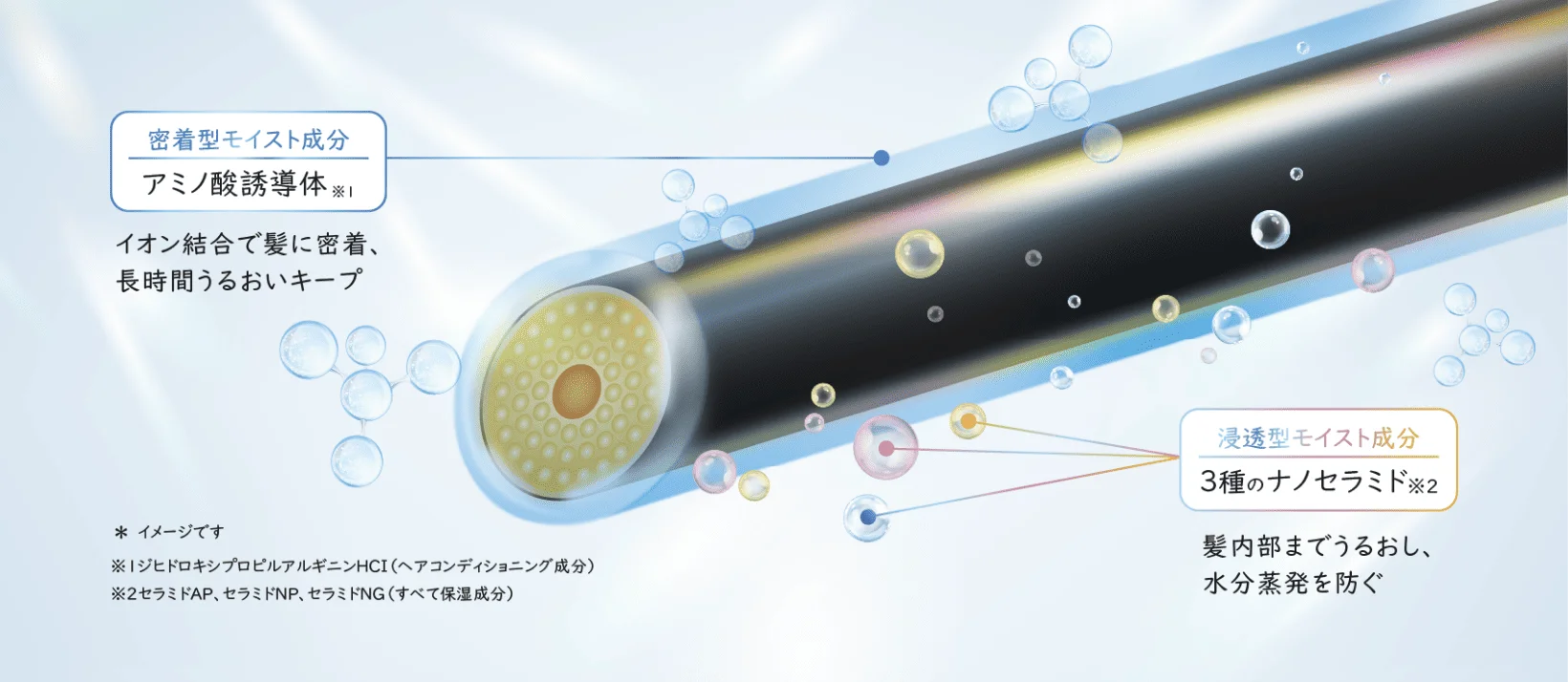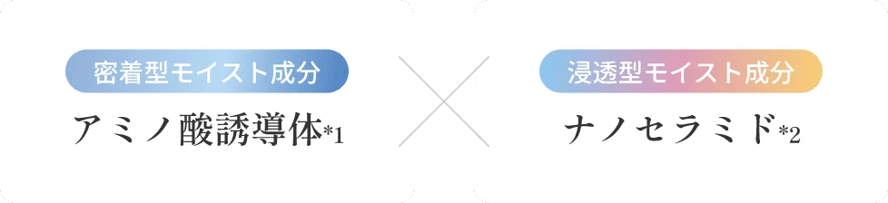 密着型モイスト成分 & 浸透型モイスト成分のダブルのモイスト成分を配合。