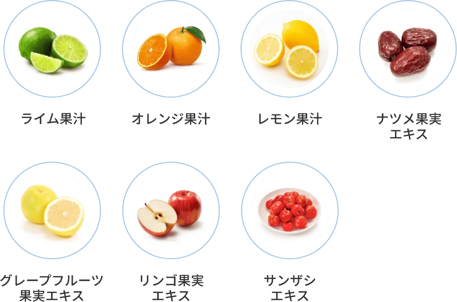 - 水、ラウロイルメチルアラニンNa、コカミドプロピルベタイン、コカミドDEA、ココイルメチルタウリンNa、ココイルグリシンK、イソステアロイル加水分解シルク、イソステアロイル加水分解ケラチン(羊毛)、イソステアロイル加水分解コラーゲン、ジヒドロキシプロピルアルギニンHCl、セラミドNG、セラミドNP、セラミドAP、ライム果汁、オレンジ果汁、レモン果汁、リンゴ果実エキス、グレープフルーツ果実エキス、ナツメ果実エキス、サンザシエキス、ヤシ油脂肪酸PEG-7グリセリル、ポリクオタニウム-10、ポリクオタニウム-52、クオタニウムー18、クオタニウムー33、コレステロール、オレス-10リン酸、PEG-32、イソステアリン酸、イソノナン酸イソノニル、BG、PG、クエン酸、EDTA-2Na、フェノキシエタノール、メチルパラベン、香料